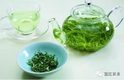 【干 茶】 颜色为碧绿、翠绿或黄绿,久置或与热空气接触易变色